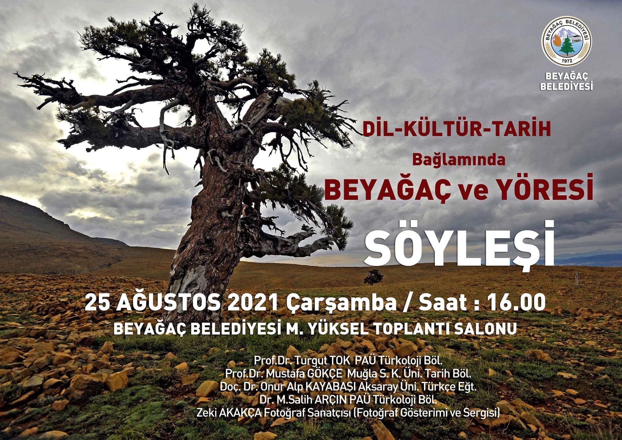 25 Ağustos 2021 Çarşamba Günü, Saat 16:00'da Beyağaç Belediyesi Mehmet YÜKSEL Salonunda, Çeşitli Üniversitelerimizden Çok Kıymetli Akademisyenlerin Katılacağı "Dil, Kültür, Tarih Bağlamında Beyağaç ve Yöresiyle İlgili Söyleşi" ve Fotoğraf Sanatçısı Zeki AKAKÇA'nın Bölgeyle İlgili Fotoğraf Sergisi Gerçekleştirilecektir.